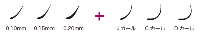 エクステンションの毛の太さ、カールをお選びいただけます。